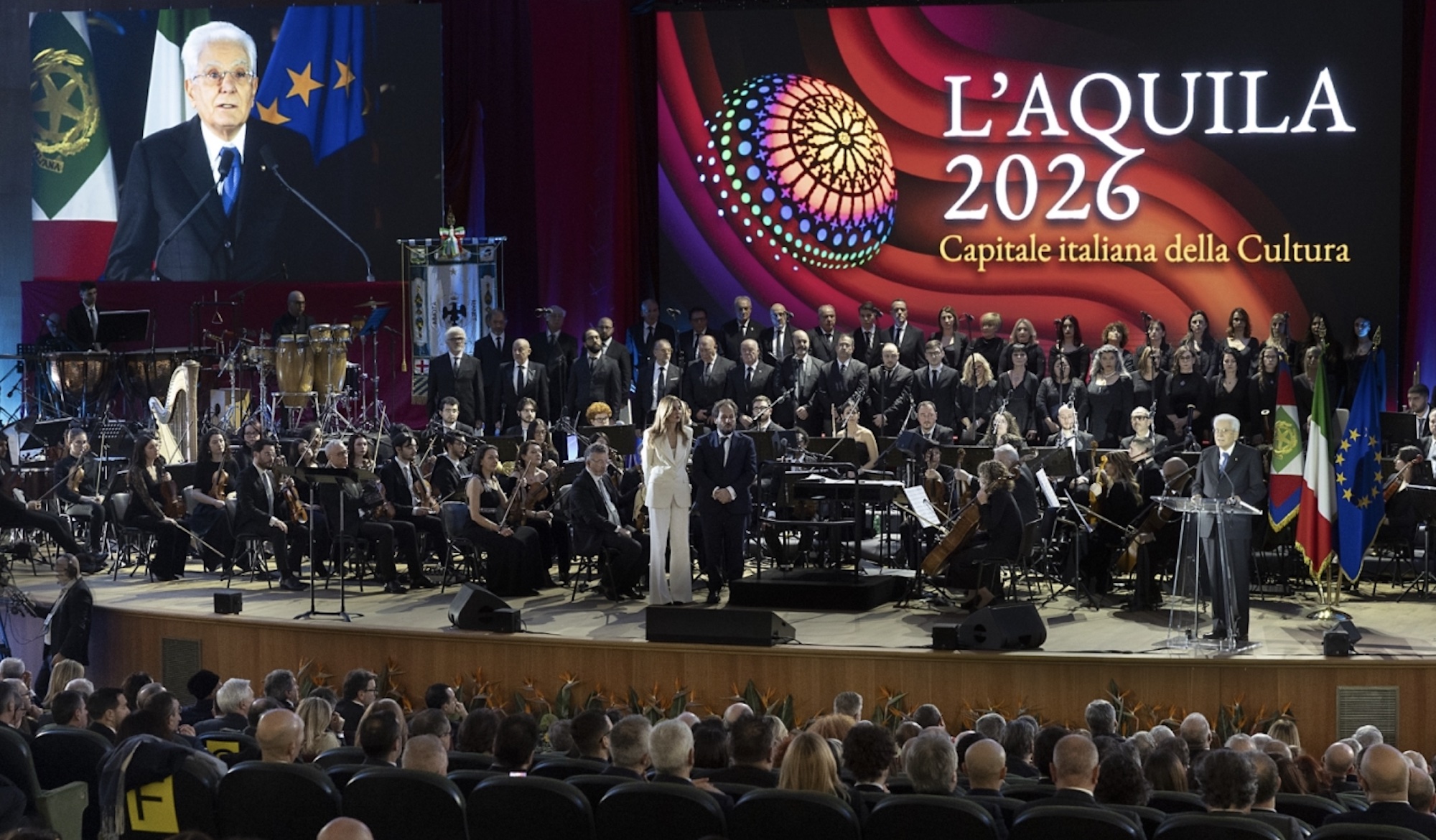 L’AQUILA\ aise\ - Dalla ricostruzione alla ribalta nazionale: la cerimonia ufficiale alla presenza del capo dello Stato.