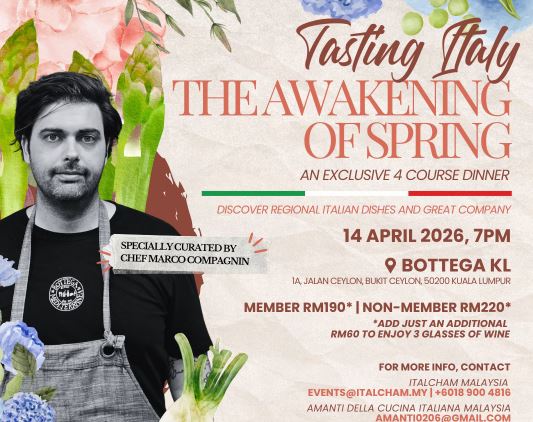 KUALA LUMPUR\ aise\ - "Con la primavera nell'aria, i sapori d'Italia chiamano". Appuntamento al prossimo 14 aprile.