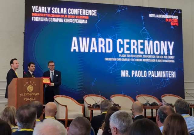 SKOPJE\ aise\ - ConsegnatA una targa di riconoscimento ad Alessandro Mieli, Regional Advisor per il partner italiano dell’Associazione Solar Macedonia – KEY Energy Transition ...