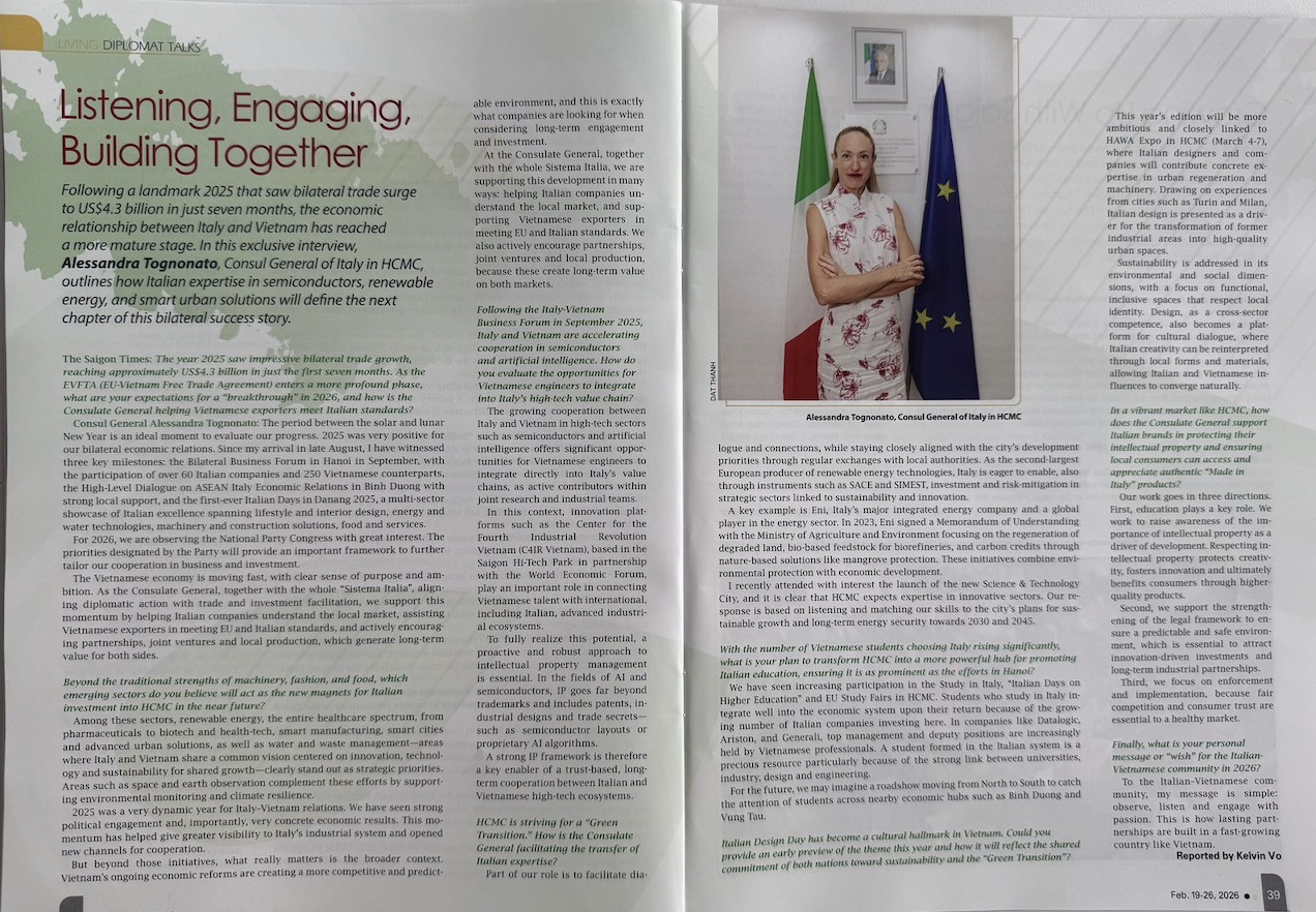 Cooperazione economica e visione condivisa: il Saigon Times intervista la console generale Tognonato