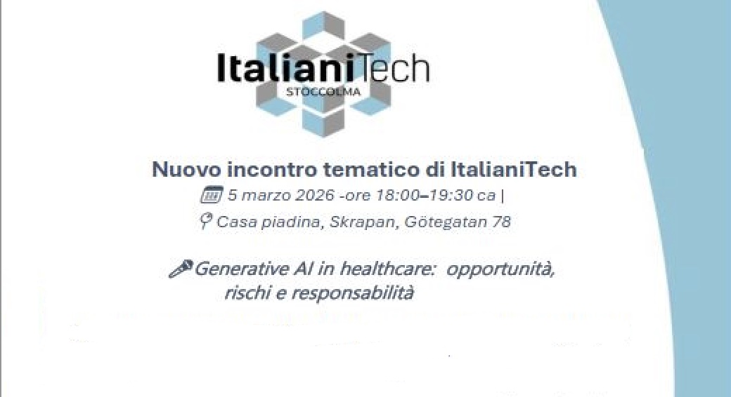 STOCCOLMA\ aise\ - Primo evento del 2026 con Italiani in Tech Stoccolma: appuntamento il 5 marzo, dalle ore 18.0 alle 19.30, presso Casa piadina, Skrapan, al 78 di Götegatan, per ...