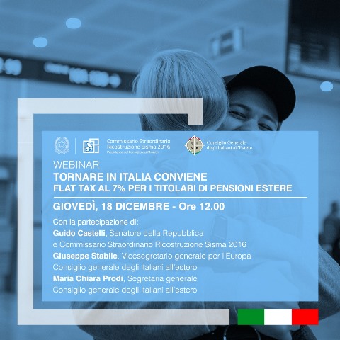 ROMA\ aise\ - “Tornare in Italia conviene – flat tax a 7% per i titolari di pensione estera” è il titolo del webinar rivolto all’Europa, il primo di una serie, organizzato dal ...