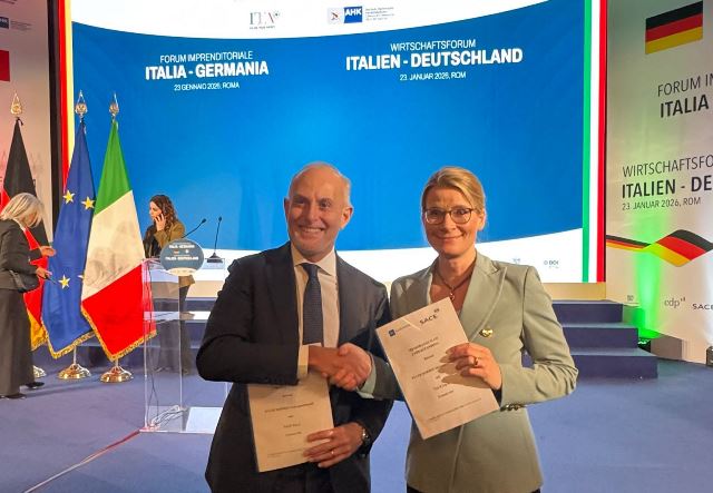 ROMA\ aise\ - In occasione del Business Forum Italia-Germania, tenuto a Roma la scorsa settimana, Sace - l’agenzia di export credit italiana partecipata dal Ministero dell’economia e delle finanze – ha firmato un Memorandum of Understanding con l’omologa tedesca Euler Hermes, con l’obiettivo di rafforzare le opportunità di interscambio e progetti internazionali di interesse comune che valorizzino il know-how industriale e tecnologico italiano e tedesco.