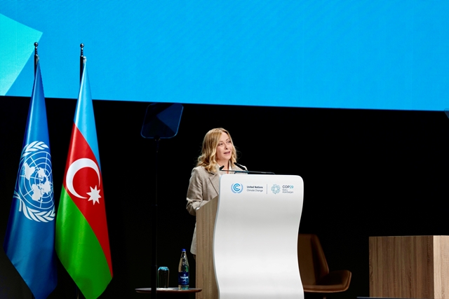 ROMA\ aise\ - “L’Italia intende continuare a fare la propria parte”. È quanto assicurato dalla Presidente del Consiglio, Giorgia Meloni, che questa mattina ha tenuto un intervento a Baku, in Azerbaijan, alla 29esima Conferenza delle Parti della Convenzione delle Nazioni Unite sui cambiamenti climatici (COP29).