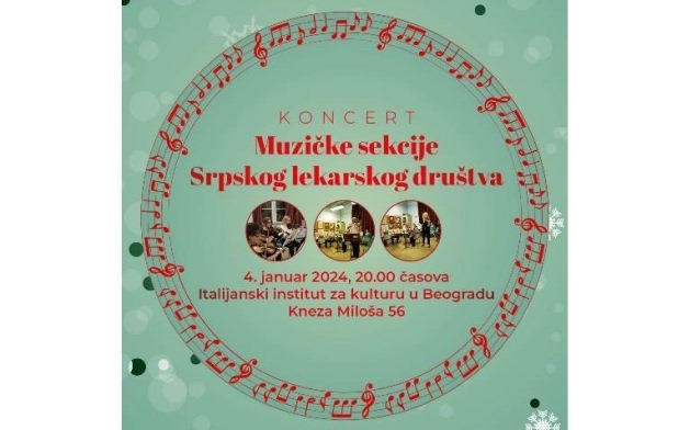 BELGRADO\ aise\ - L’Istituto Italiano di Cultura di Belgrado ospiterà domani, 4 gennaio, alle 20.00 il concerto della Sezione Musicale dell’Associazione Serba dei Medici.