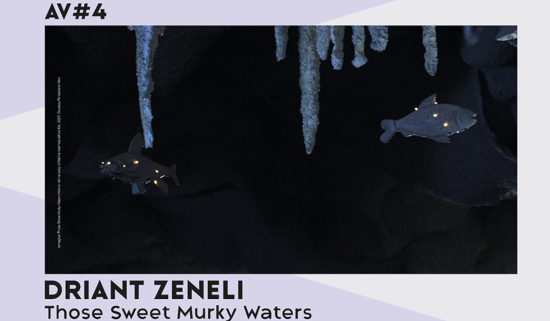 “Those sweet murky waters”, prodotto dalla Fondazione Merz di Torino, è un viaggio metaforico dentro la vita di un pesce che da un passato – profondo – nel quale poteva volare, sceglie di vivere nelle fresche e limpide acque del lago, che presto diventeranno torbide per volere della diga che intendeva bloccare ogni possibile cambiamento per potersi specchiare nella superficie immobile dell’acqua.