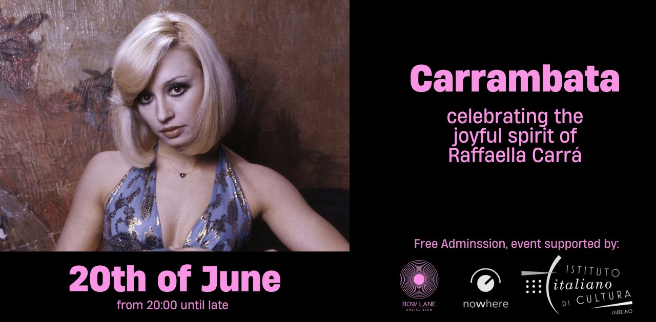La serata, organizzata da Nowhere Music con il sostegno dell’Istituto Italiano di Cultura, si terrà giovedì 20 giugno, dalle ore 20 in poi, e sarà dedicata alla figura di Raffaella Carrà, icona pop italiana, a pochi giorni dall’anniversario della nascita, il 18 giugno.