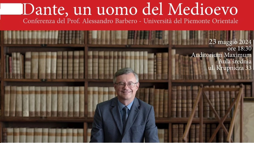 CRACOVIA\ aise\ - Si intitola “Dante - un uomo del Medioevo” la conferenza che il Professor Alessandro Barbero terrà il prossimo 23 maggio a Cracovia, dalle 18.30 nell'Auditorium Maximum (Aula Media) dell'Università Jagellonica.