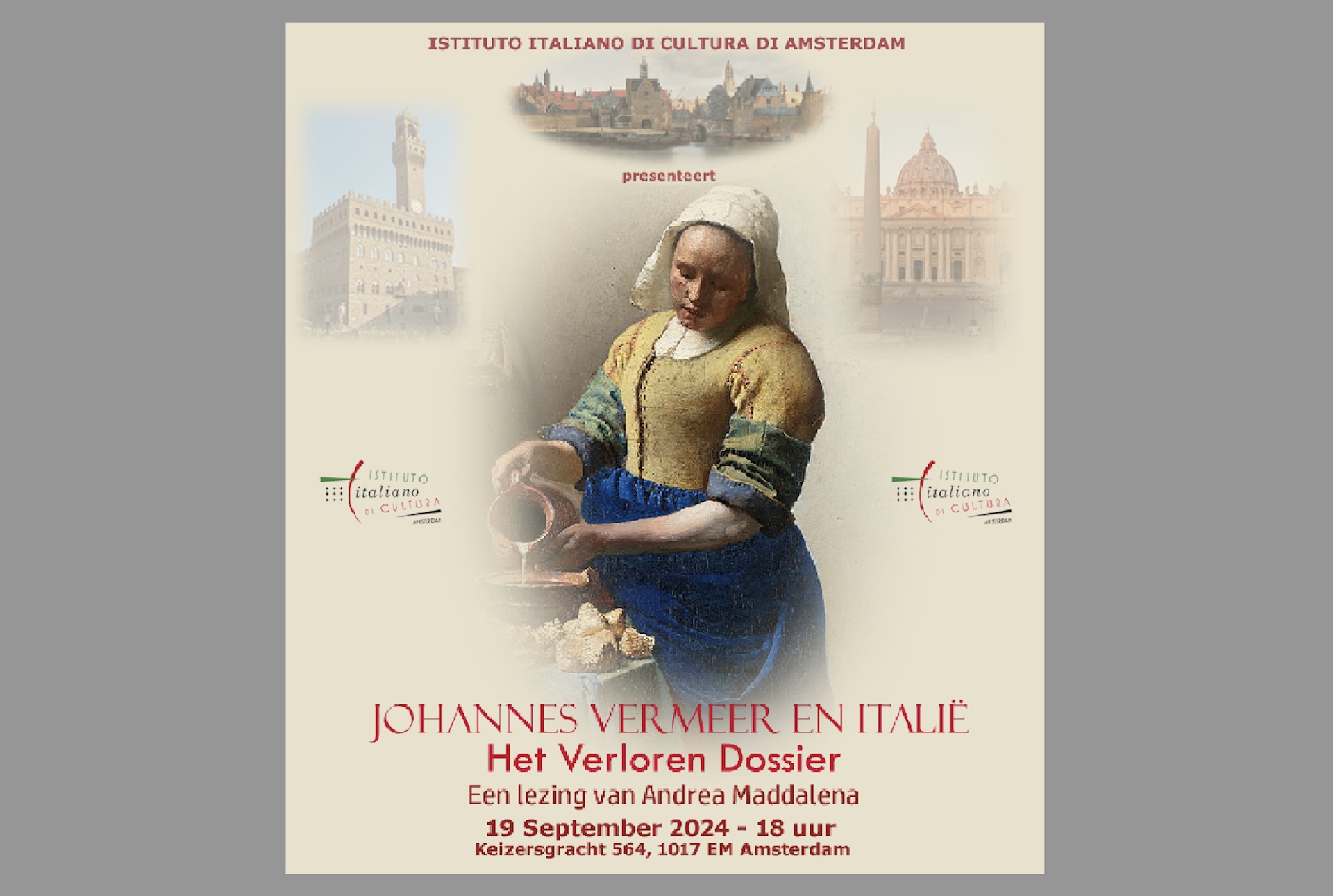 L’Istituto Italiano di Cultura di Amsterdam ospiterà giovedì, 19 settembre, alle ore 18, la conferenza “Johannes Vermeer e l’Italia – Il Dossier Perduto”, una serata, in lingua olandese, dedicata alla ricostruzione del rapporto tra Johannes Vermeer e l’Italia.