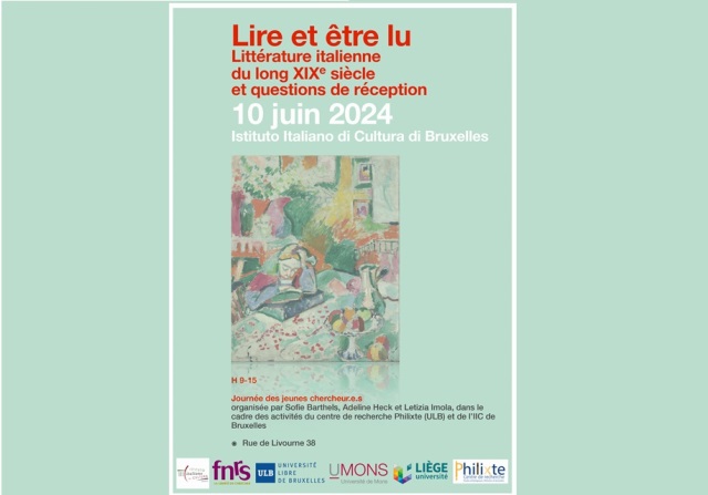 BRUXELLES\ aise\ - L’Istituto Italiano di Cultura a Bruxelles ospiterà lunedì 10 giugno, dalle 9 alle 15, una Giornata di Studi organizzata da Sofie Barthels, Adeline Heck e Letizia Imola, nell’ambito delle attività del centro di ricerca Philixte (ULB) e dell’IIC. Il tema della conferenza sarà “La letteratura italiana del lungo Ottocento e le questioni di ricezione”. Il programma della giornata prevede interventi di giovani ricercatori di varie università del Belgio e dell’Italia, in lingua francese e italiana.