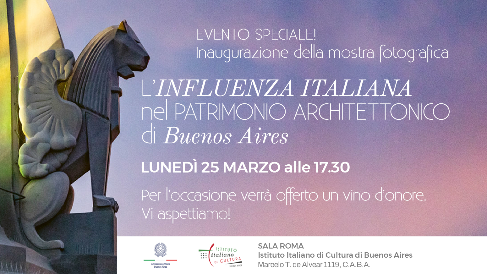 BUENOS AIRES\ aise\ - Sarà inaugurata il 25 marzo, alle ore 17.30, presso la Sala Roma dell’Istituto Italiano di Cultura di Buenos Aires la mostra fotografica “L’influenza italiana nel patrimonio architettonico di Buenos Aires”.