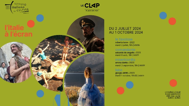 MONTERAL\ aise\ - “L’Italie à l’écran” è il nuovo ciclo di film nato dalla collaborazione tra l’Istituto Italiano di Cultura di Montréal e il Cinéma Le Clap, dedicato alla scoperta della nuova produzione del cinema italiano.