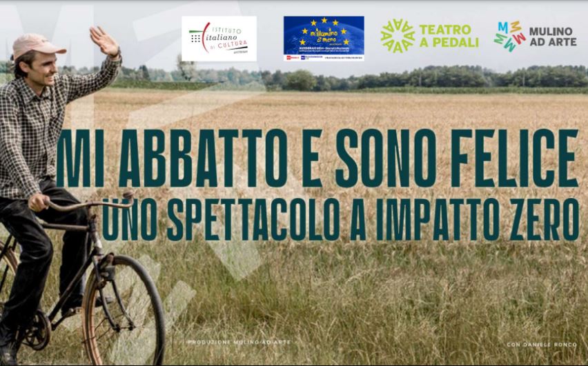 AMSTERDAM\ aise\ - In occasione della giornata “M’illumino di meno”, la Giornata Nazionale del Risparmio Energetico e degli Stili di Vita Sostenibili, l’Istituto Italiano di Cultura di Amsterdam presenterà il prossimo 13 febbraio alle ore 19.00, lo spettacolo “Mi abbatto e sono felice” di e con Daniele Ronco, produzione della compagnia Mulino ad Arte. Originaria della zona di Torino, la compagnia è stata fondata nel 2012 ed è focalizzata sulla produzione green di spettacoli.
