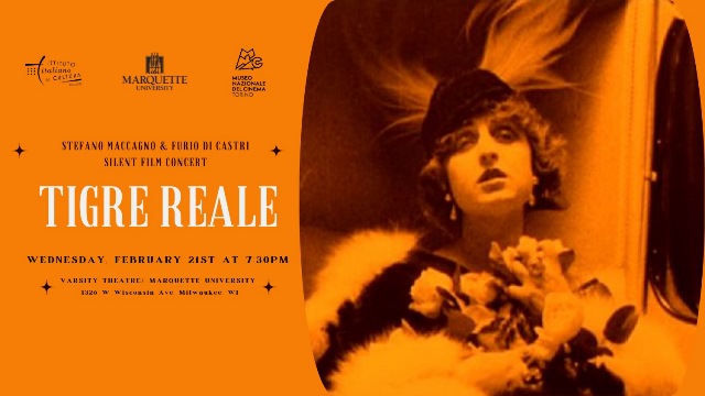 CHICAGO\ aise\ - Si intitola “Tigre Reale” il cineconcerto con esibizione dal vivo dei musicisti italiani Stefano Maccagno (piano) e Furio Di Castri (contrabbasso) in programma il prossimo 21 febbraio al Varsity Theatre di Milwaukee. Organizzato dall’Istituto Italiano di Cultura a Chicago, in collaborazione con la Marquette University, il concerto inizierà alle 19.30.