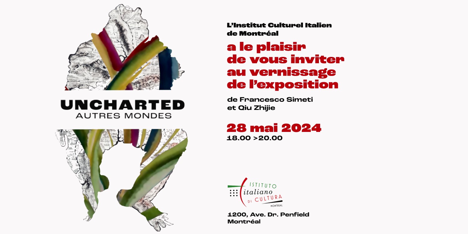 MONTREAL\ aise\ - Si inaugura martedì 28 maggio, alle ore 18.00, nelle sale dell’Istituto Italiano di Cultura di Montreal la mostra “Uncharted – Autres Mondes” di Francesco Simeti e Qiu Zhijie. L’esposizione, a cura di Davide Quadrio e Laura Vigo, sarà aperta al pubblico sino al 6 settembre con ingresso libero, dal lunedì al venerdì.