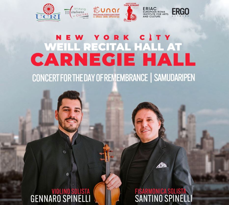 NEW YORK\ aise\ - In occasione della Giornata Internazionale della Memoria, si terrà alle ore 20.00 del prossimo 2 febbraio, nella prestigiosa Carnegie Hall di New York, il concerto promosso e organizzato dalla Unione delle Comunità Romanès in Italia (UCRI) di Gennaro e Santino Spinelli.