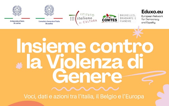 BRUXELLES\ nflash\ - “Insieme contro la violenza di genere – Voci, dati e azioni tra l’Italia, il Belgio e l’Europa” è il tema dell’incontro in programma domani, 18 novembre, dalle 18.15 all’Istituto Italiano di Cultura di Bruxelles. Promosso in occasione della Giornata Internazionale contro la Violenza sulle Donne, l’incontro – che si terrà in lingua italiana, con due interventi in francese e inglese – è organizzato dal Consolato Generale d’Italia, IIC ed Eduxo APS in collaborazione con il Comites Bruxelles, Brabante e Fiandre. La serata - che intreccia istituzioni, società civile e cultura – prevede l’inaugurazione della prima panchina rossa, una tavola rotonda, performance artistiche e un momento finale di networking con raccolta fondi a sostegno della Campagna Loveducation di Eduxo APS. (nflash)