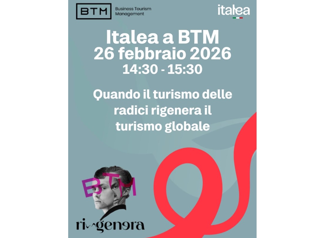 ROMA\ nflash\ - “Quando il turismo delle radici rigenera il turismo globale”. Così si intitola l’incontro che Italea ha organizzato domani, 26 febbraio, alle 14.30 all’interno di BTM – Business Tourism Management. Il panel dedicato al Programma Italea esplorerà dunque il turismo delle radici come strumento di rigenerazione culturale, sociale ed economica, capace di trasformare memorie e identità in nuove opportunità per i territori e per le comunità italiane nel mondo. (nflash)