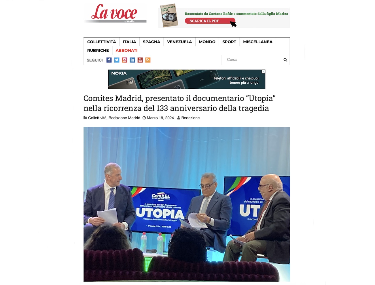 Rassegna Stampa La Voce d’Italia/ Comites Madrid: presentato il documentario “Utopia” nella ricorrenza del 133 anniversario della tragedia 20 marzo 2024 - h 16:39