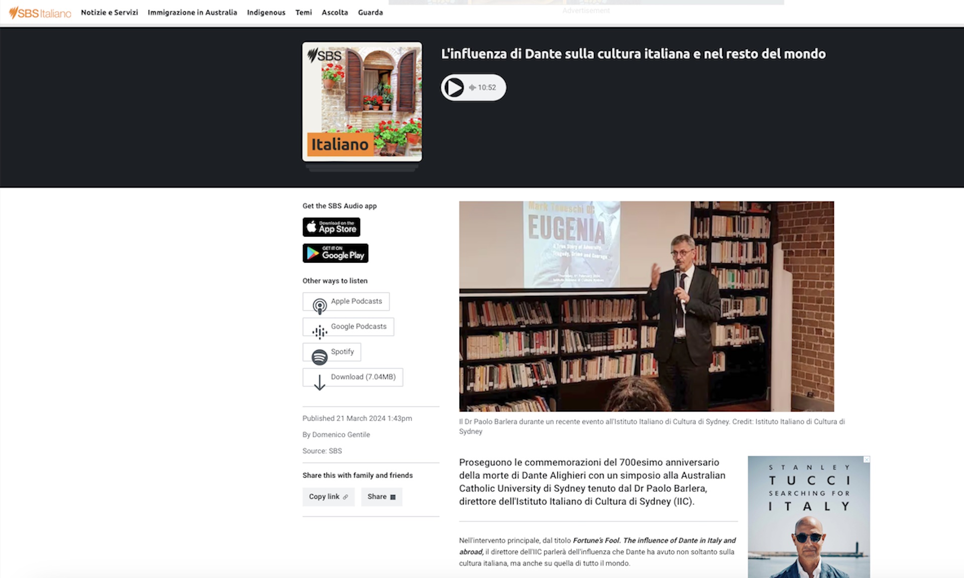 Rassegna Stampa SBS Italian/ L'influenza di Dante sulla cultura italiana e nel resto del mondo - di Domenico Gentile 21 marzo 2024 - h 12:41