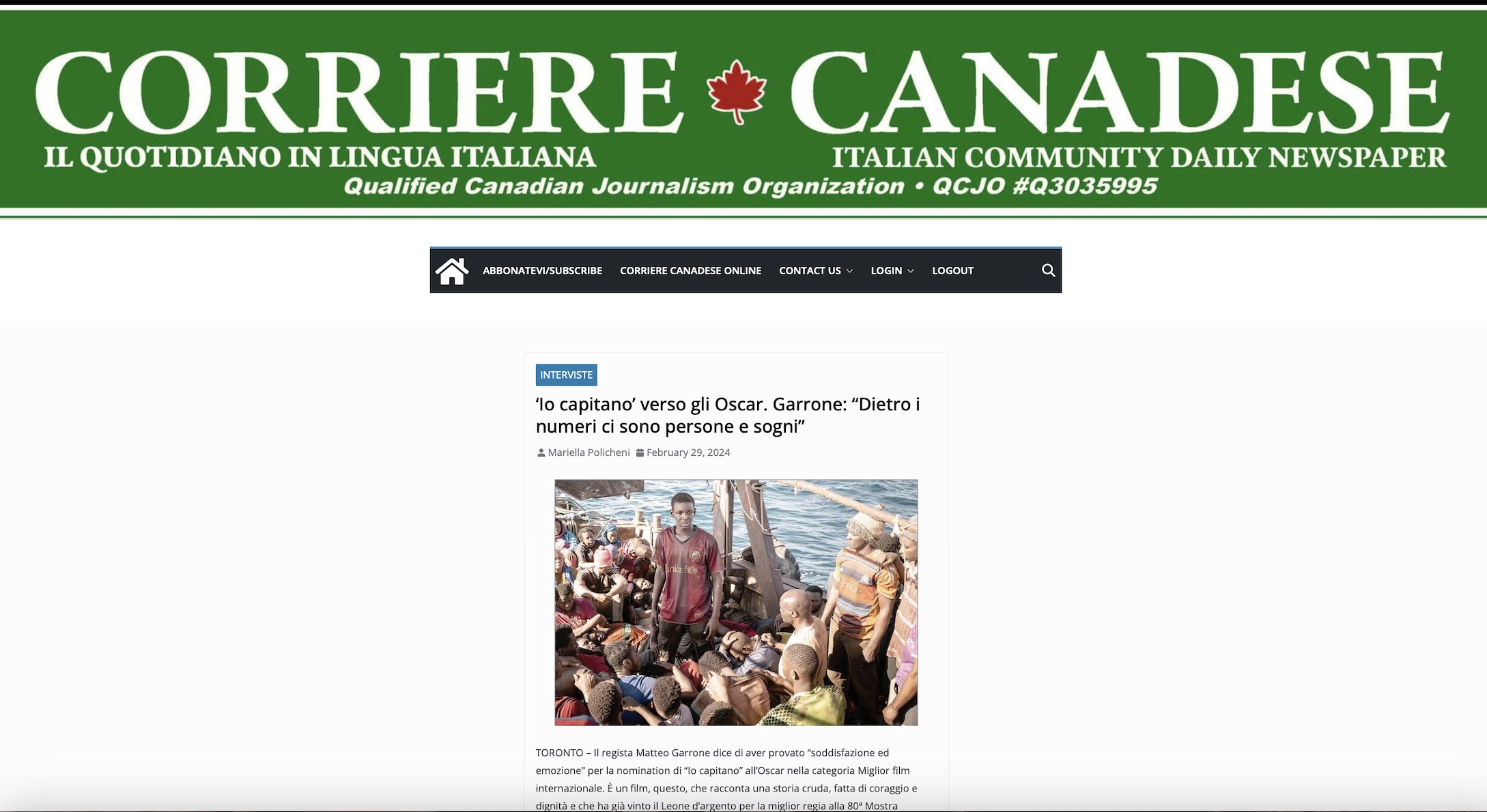 TORONTO\ aise\ – “Il regista Matteo Garrone dice di aver provato “soddisfazione ed emozione” per la nomination di “Io capitano” all’Oscar nella categoria Miglior film ...
