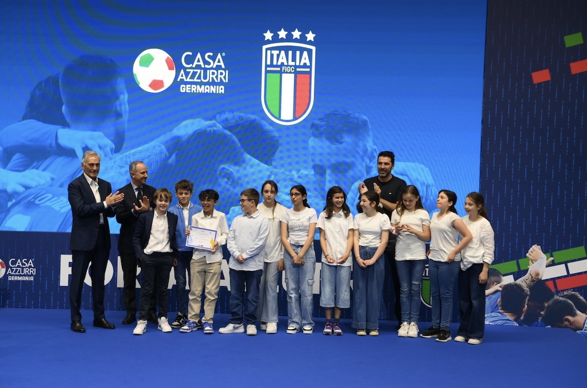 BERLINO\ aise\ - Presenti l’ambasciatore d’Italia in Germania Armando Varricchio, il presidente della FIGC Gabriele Gravina e il capo delegazione Gianluigi Buffon.