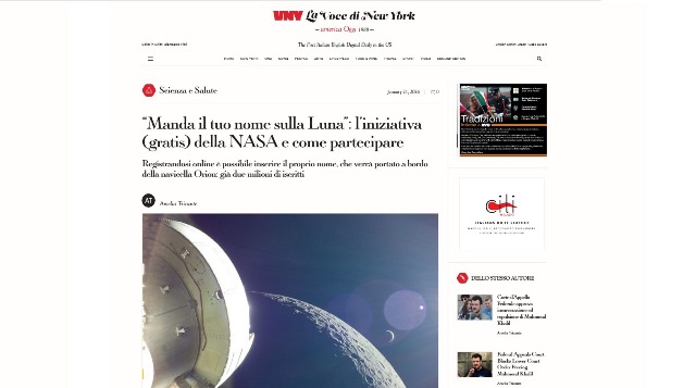 La voce di New York/ “Manda il tuo nome sulla Luna”: l’iniziativa (gratis) della NASA e come partecipare – di Amelia Tricante 25 gennaio 2026 - h 14:55