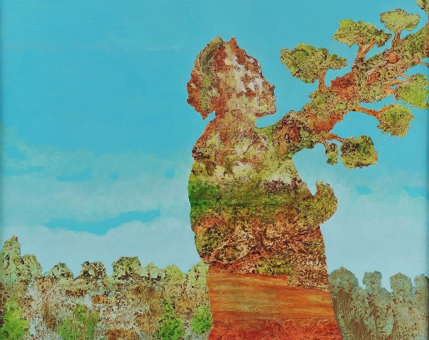 Nino Pollini, Homo con interferenze, 2025, olio e pigmenti su tavola, cm. 100x100, dettaglio