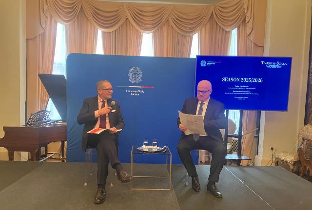 LONDRA\ aise\ - L’Ambasciata d’Italia a Londra ha ospitato la scorsa settimana la conferenza stampa di presentazione della stagione 2025-2026 del Teatro alla Scala di Milano, alla presenza del Sovrintendente e Direttore Artistico Fortunato Ortombina.