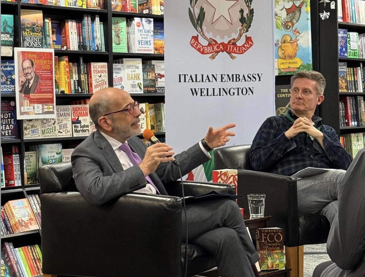 Ad ospitare la serata è stata la libreria Unity Books di Wellington, dove l'ambasciatore Cristiano Maggipinto ha dato il benvenuto ai numerosi lettori e amanti della letteratura che hanno partecipato all’iniziativa. Nel corso del suo intervento l’ambasciatore ha riflettuto sul contributo duraturo di Eco alla letteratura, alla semiotica e al pensiero critico, evidenziando l‘influenza di Eco sulla cultura, la lingua e la vita intellettuale odierne.